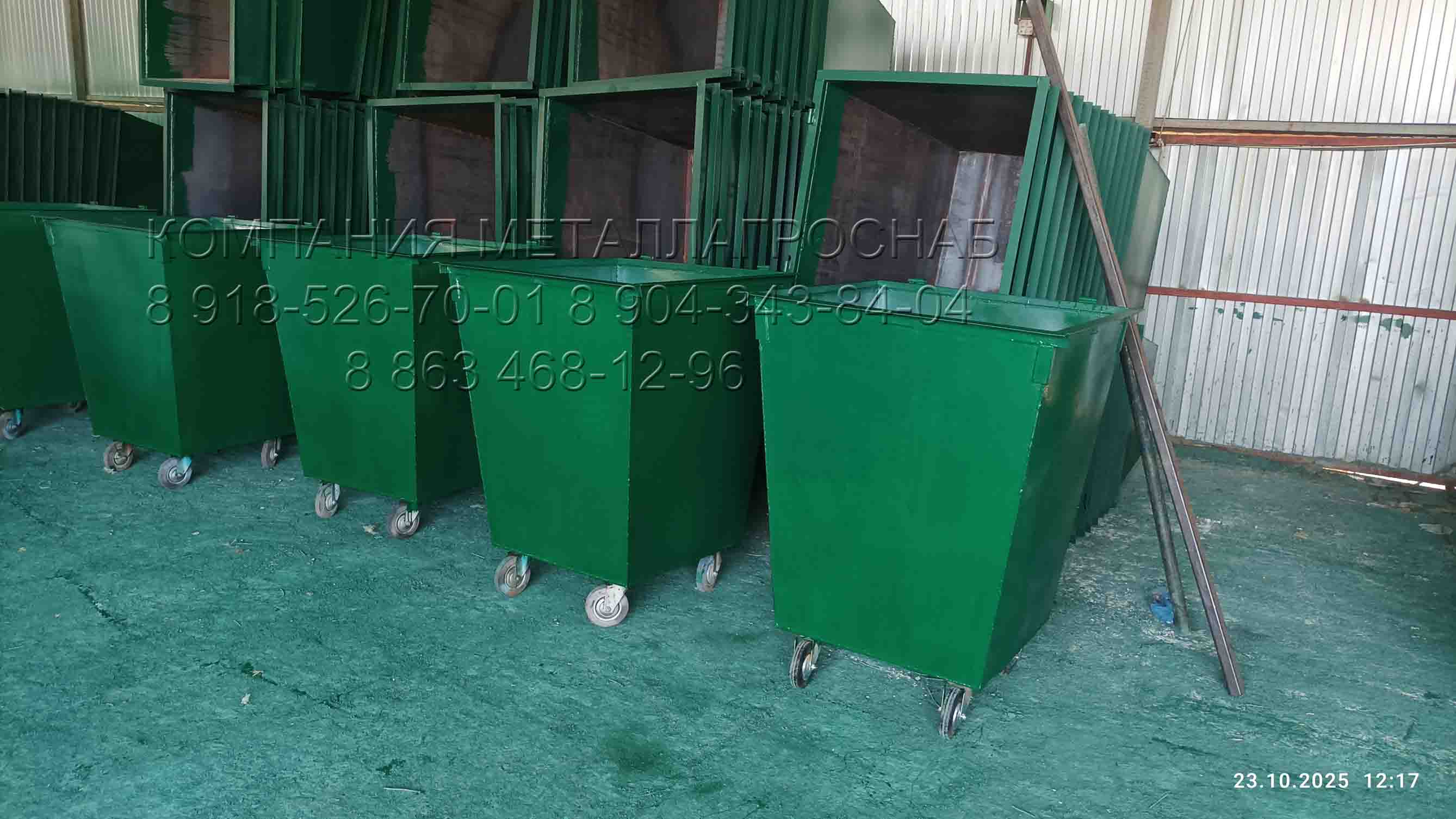 Контейнер 0,75 м3 металлический сталь 2 мм, для мусора ТБО. Купить недорого, по выгодной цене контейнер 0,75 м3 для мусора. Большим спросом пользуется контейнер для мусора объёмом 0.75 м3 сталь 2 мм. Контейнер изготовлен из стали марки Ст3сп5, как правило толщиной стали 2 мм. Также мы производим контейнер 0,75 м3 где боковые стенки контейнера усилены уголком 40х40х3 мм для прочности, а на дно контейнера приварены ножки из уголка 40х40х2 мм. Таким образом контейнер 0,75 м3 имеет Технические Условия ( ТУ ) как металл 2 мм, или 3 мм, или 4 мм толщиной стали, по желанию покупателя. Для прочности и жесткости конструкции контейнера 0.75 м.куб по краям на сварочных углах приваривается дополнительно металлический уголок 40x40х3 мм и еврозахваты из кругляка или трубы диаметром 32 мм, также внизу контейнера проделываются дырочки для стока лишней влаги, чтобы контейнер дольше служил по назначению. Контейнер-мульда 750 литров стандартно окрашивается в зелёный цвет, первый слой грунт ГФ-021, затем один слой эмаль ПФ-115, или на выбор покупателя в синий, красный, оранжевый, серый, также бесплатно нанесем логотип покупателя на контейнер. Контейнер 0,75 м3 для мусора ТБО произведен в соответствии с техническим регламентом ГОСТ и ТУ и имеет сертификат соответствия. Размеры контейнера 1100х980х700 мм. Вес контейнера без нагрузки 70 кг сталь 2 мм. Гарантия 12 месяцев. Также по техническому заданию заказчика мы изготовим контейнеры любой конфигурации, сложности, и любой толщины стали. Также комплектуем контейнер 0.75 м3 колёсами 125 мм, 160 мм, 200 мм, крышкой цельной или распашной, на съёмных петлях. Наша компания осуществляет прямые поставки контейнеров объёмом 0.75 м3 как собственным транспортом, так и транспортными компаниями на выбор заказчика. Контейнер 0,75 м3 купить по цене 8 900 рублей. Ждем Ваших заказов и предложений! С Уважением Компания МеталлАгроСнаб!